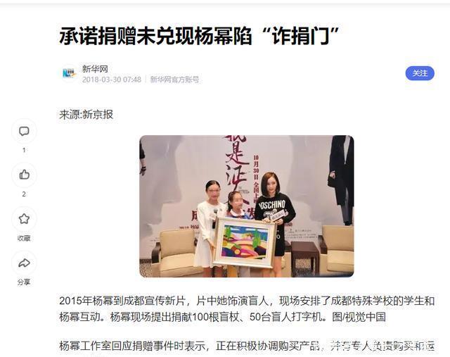更致命的是,中国青年报直接发文点名,配图标题就是: 《杨幂涉“诈捐”风波这锅背得不冤》